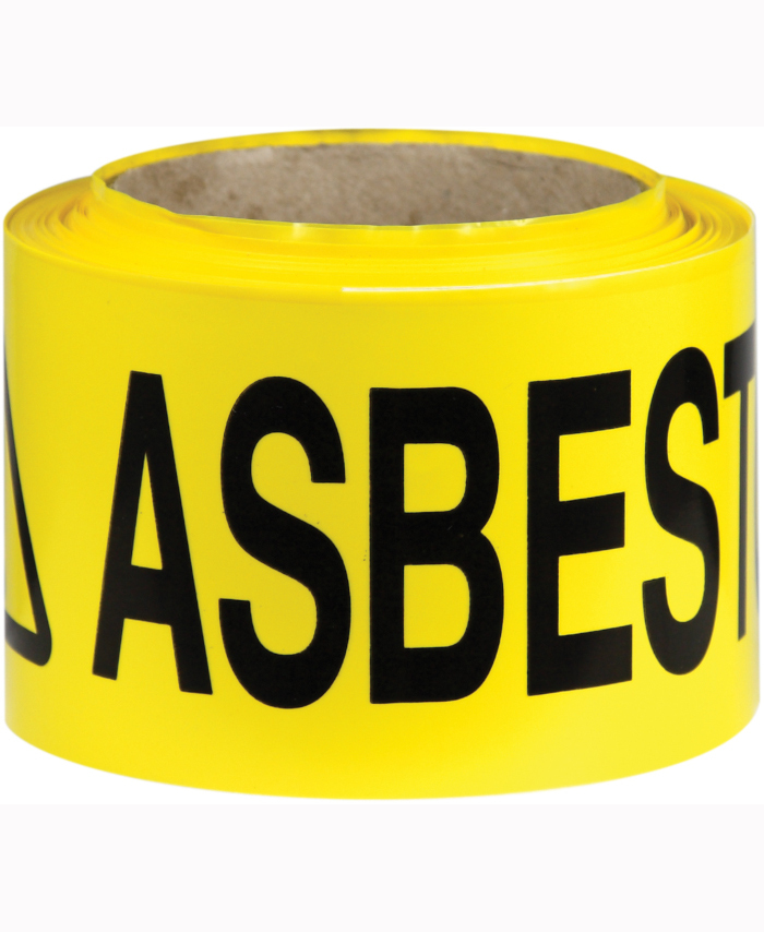 WORKWEAR, SAFETY & CORPORATE CLOTHING SPECIALISTS - 75mm x 100mtr - Barrier Tape - Black/Yellow - Caution Asbestos