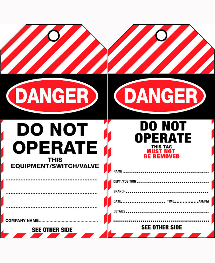 WORKWEAR, SAFETY & CORPORATE CLOTHING SPECIALISTS - 75x160mm - Cardboard Tags - Pkt of 25 - Danger Do Not Operate This Equipment/Switch/Valve