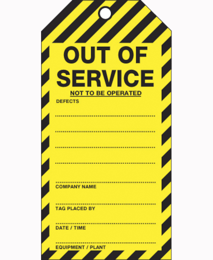 WORKWEAR, SAFETY & CORPORATE CLOTHING SPECIALISTS - 75x160mm - Cardboard Tags - Pkt of 25 - Out of Service Not To Be Operated