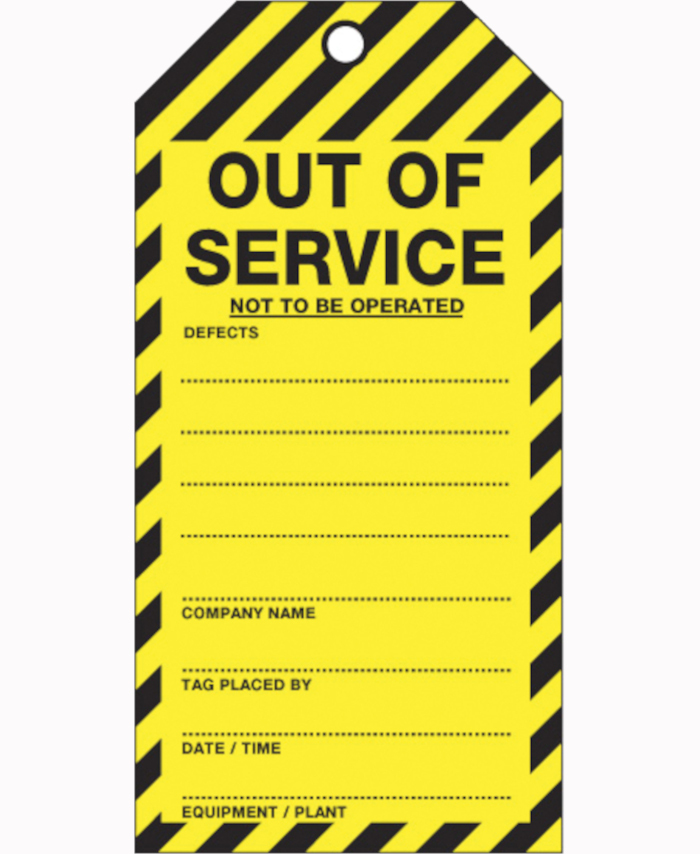WORKWEAR, SAFETY & CORPORATE CLOTHING SPECIALISTS - 75x160mm - Tear Proof Tags - Pkt of 25 - Out of Service Not To Be Operated