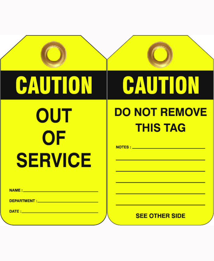 3. 80x140mm - Heavy Duty PVC Tags - Pkt of 25 - Caution Out Of Service