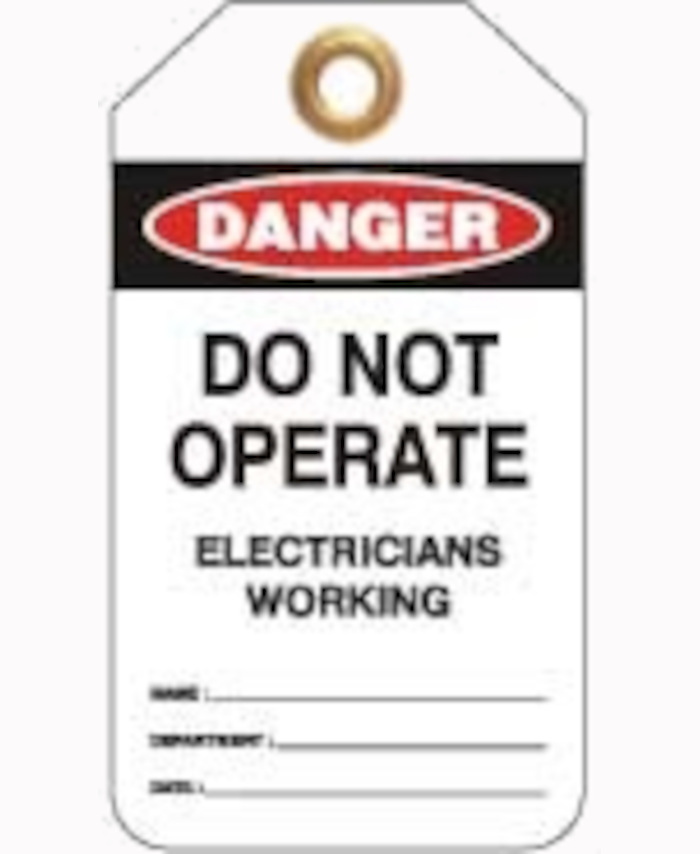 WORKWEAR, SAFETY & CORPORATE CLOTHING SPECIALISTS - 80x140mm -  Heavy Duty PVC Tags - Pkt of 25 - Danger Do Not Operate Electricians Working