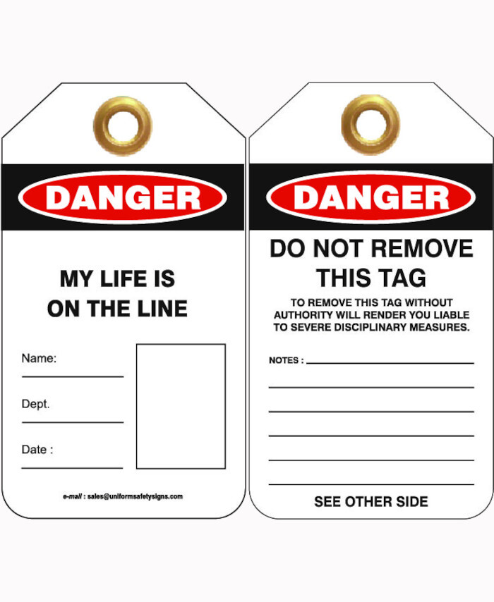 WORKWEAR, SAFETY & CORPORATE CLOTHING SPECIALISTS - 80x140mm -  Heavy Duty PVC Tags - Pkt of 25 - Danger My Life Is On The Line