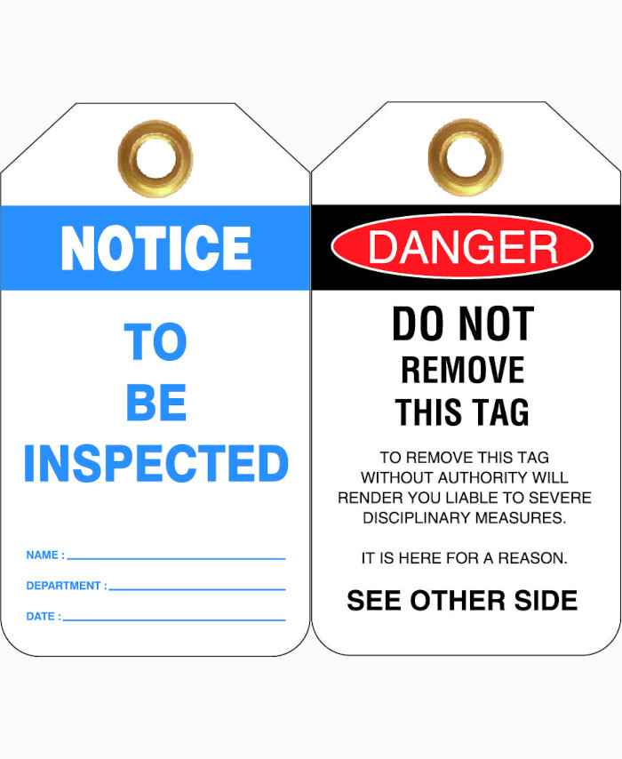 3. 80x140mm - Heavy Duty PVC Tags - Pkt of 25 - Notice To Be Inspected