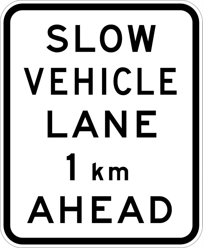 3. 900x1100mm - Aluminium - Class 1 Reflective - Slow Vehicle Lane 1km Ahead