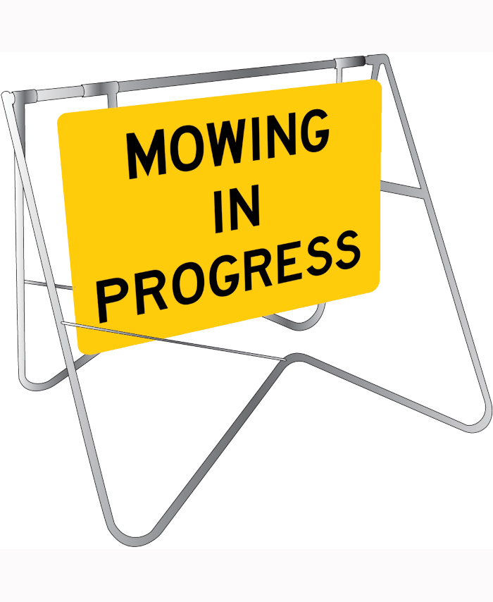 900x600mm - Class 1 - Swing Stand and Sign - Mowing In Progress