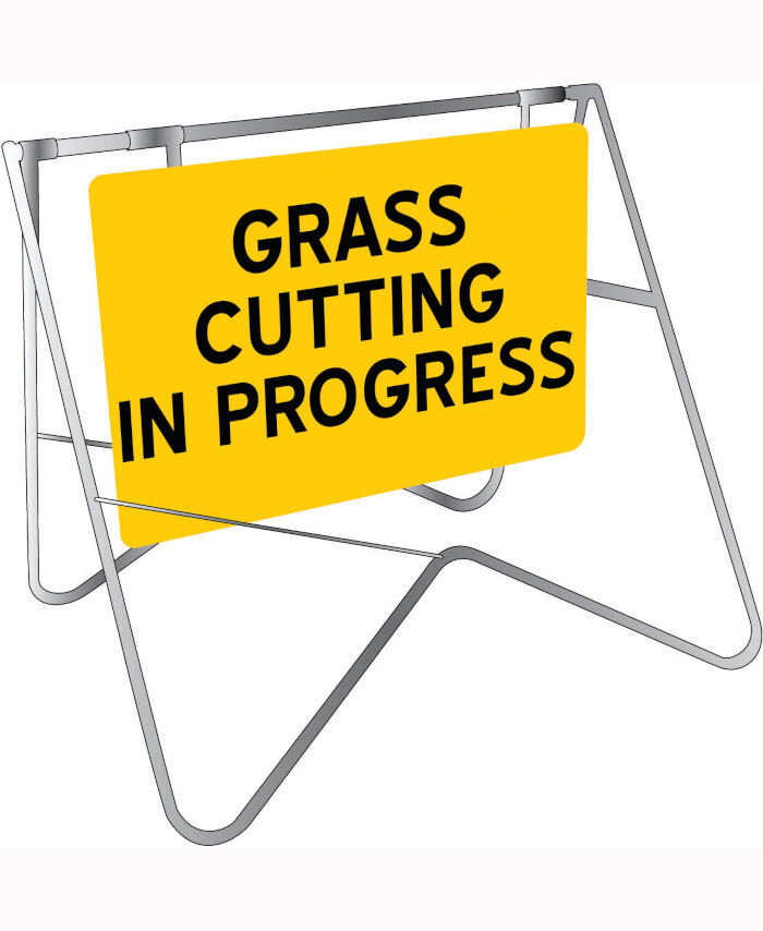 3. 900x600mm - Swing Stand and Sign - Grass Cutting In Progress