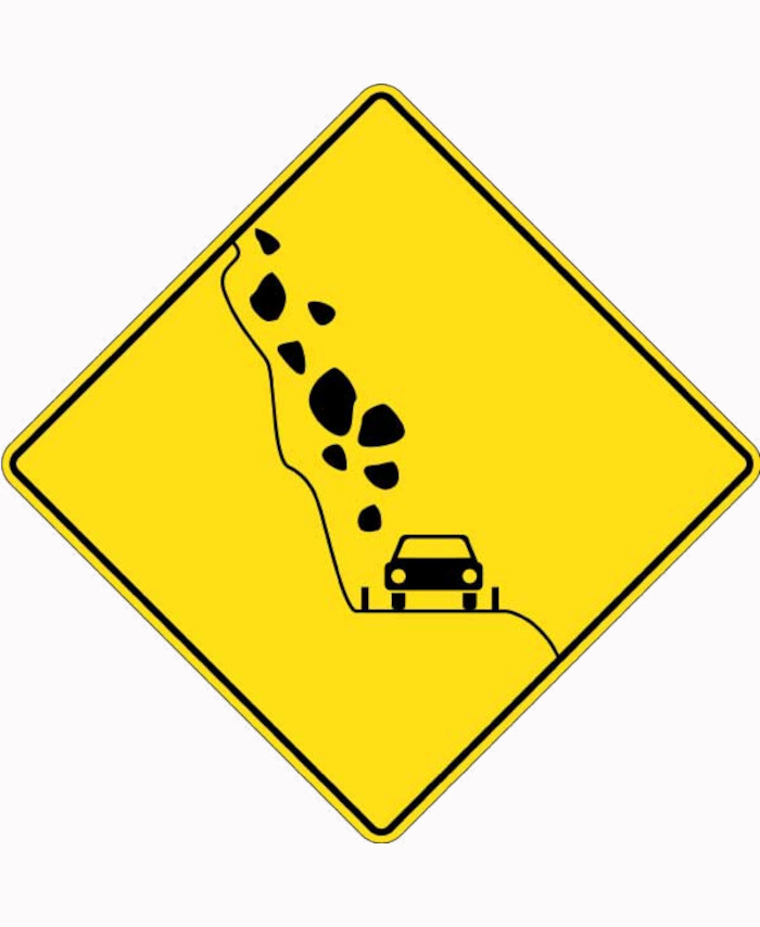 900x900mm - Aluminium - Class 1 Reflective - Falling Rocks Picto