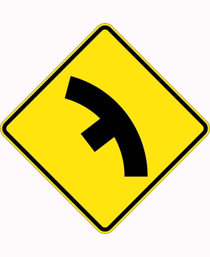 900x900mm - Aluminium - Class 1 Reflective - Side Road Junction On Curve Right
