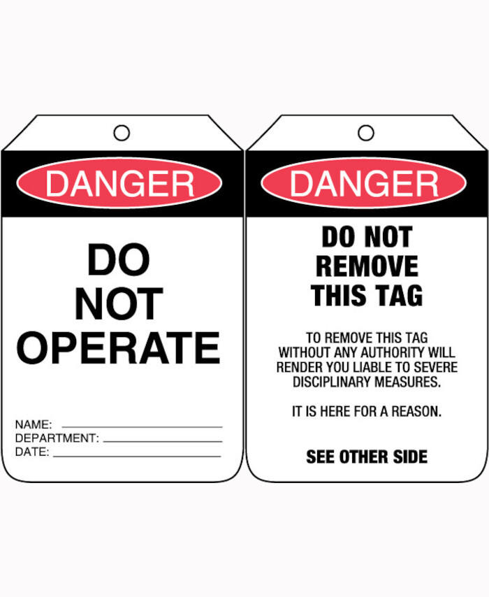 WORKWEAR, SAFETY & CORPORATE CLOTHING SPECIALISTS - 90x140mm - Cardboard Tags - Pkt of 100 - Danger Do Not Operate