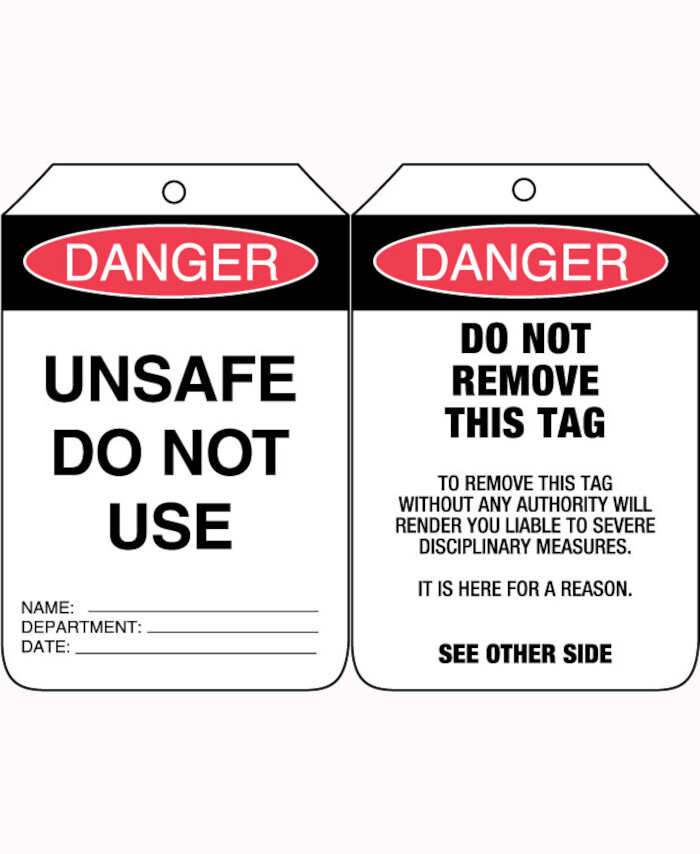 WORKWEAR, SAFETY & CORPORATE CLOTHING SPECIALISTS - 90x140mm - Cardboard Tags - Pkt of 100 - Danger Unsafe Do Not Use