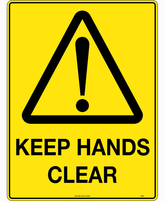 WORKWEAR, SAFETY & CORPORATE CLOTHING SPECIALISTS - 90x55mm - Self Adhesive - Sheet of 10 - Keep Hands Clear