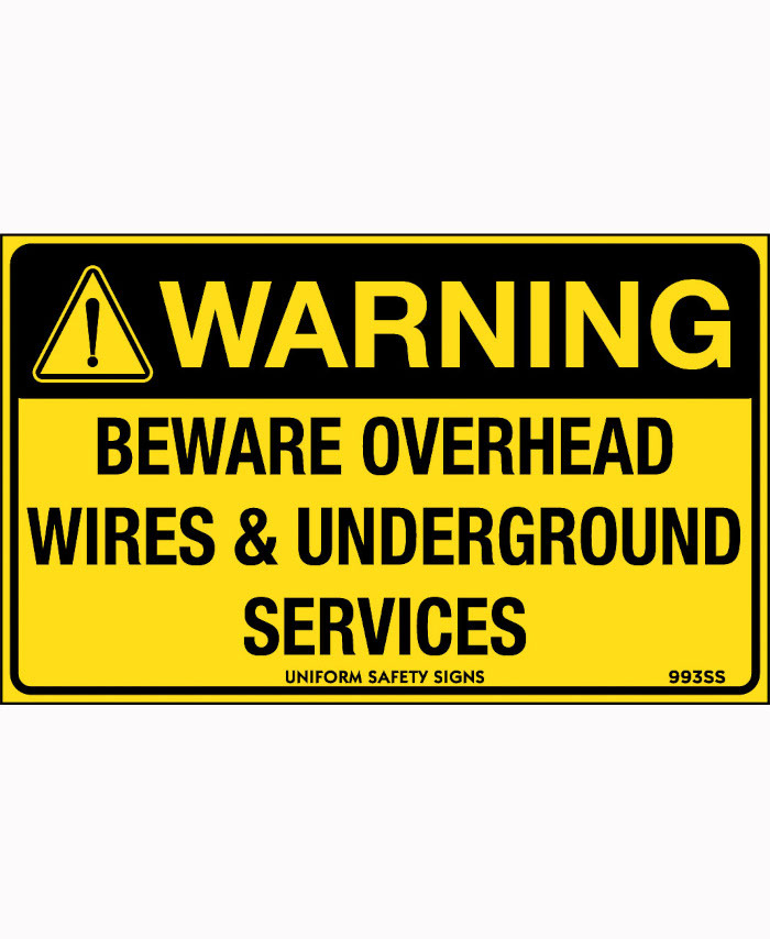 WORKWEAR, SAFETY & CORPORATE CLOTHING SPECIALISTS - 90x55mm - Self Adhesive - Sheet of 10 - Warning Beware Overhead Wires and Underground Services