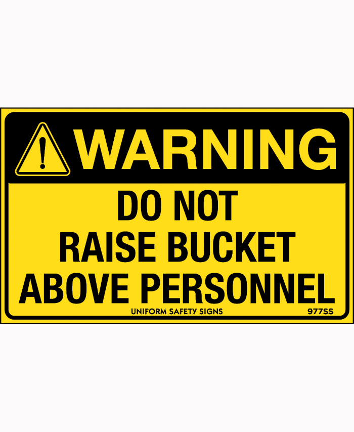 90x55mm - Self Adhesive - Sheet of 10 - Warning Do Not Raise Bucket Above Personnel
