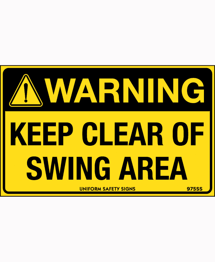 WORKWEAR, SAFETY & CORPORATE CLOTHING SPECIALISTS - 90x55mm - Self Adhesive - Sheet of 10 - Warning Keep Clear of Swing Area