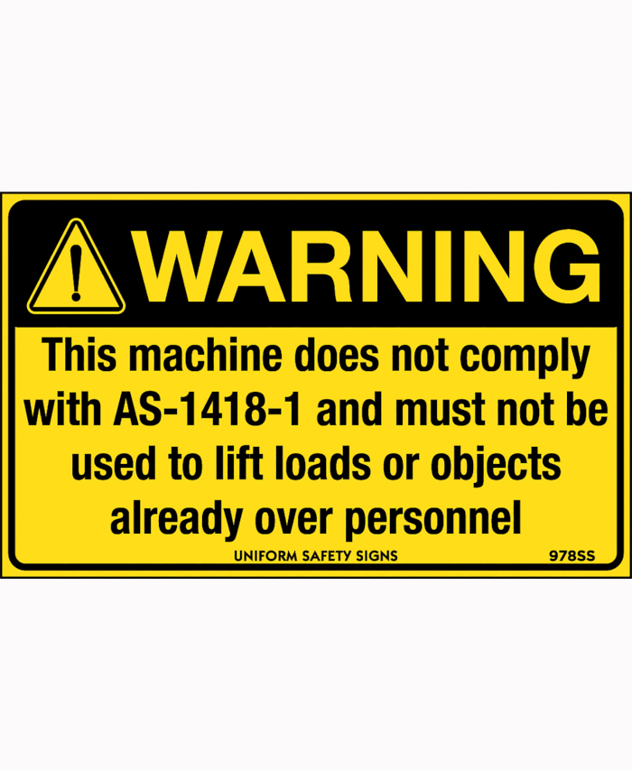 3. 90x55mm - Self Adhesive - Sheet of 10 - Warning This Machine Does not Comply with AS-1418-1 and Must