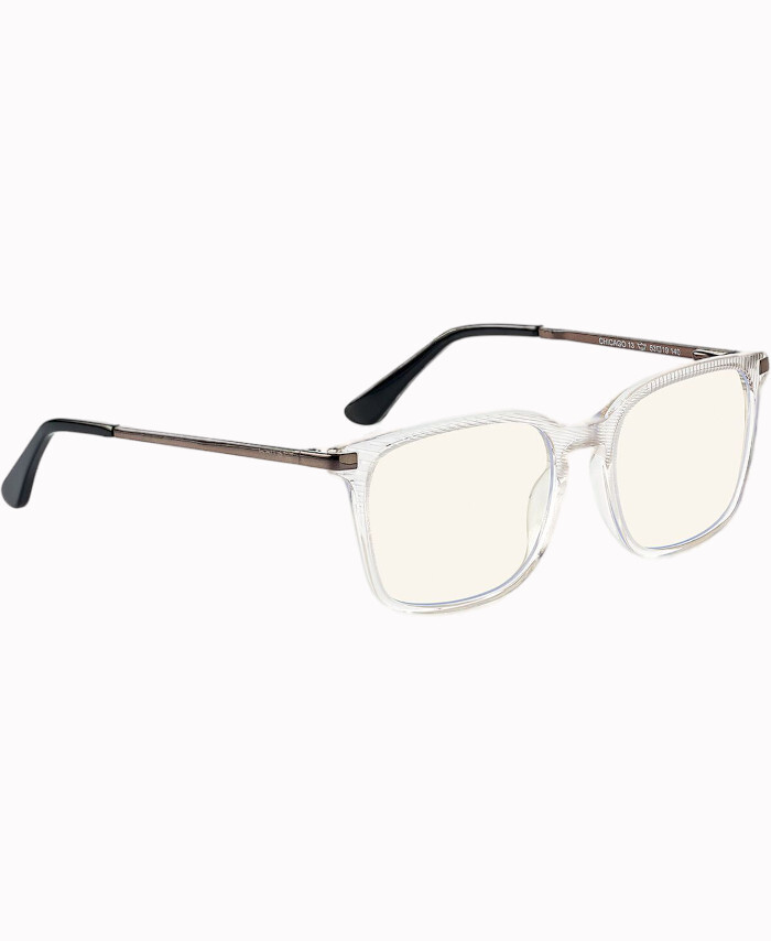 CHICAGO - Men ProBlu Clear Lens Crystal Clear Frame W/Gun Metal Temple & Blk Temple Tip