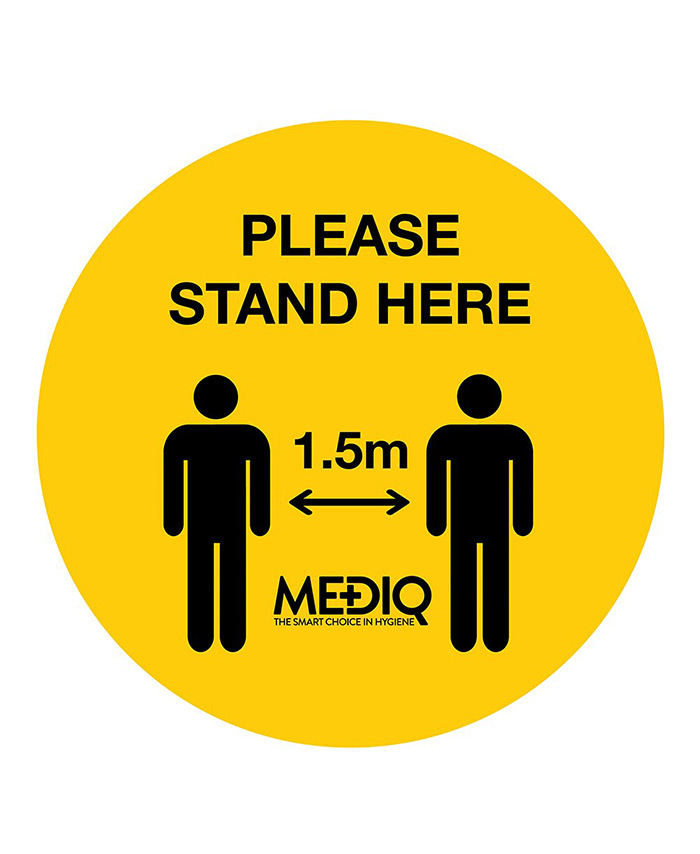 WORKWEAR, SAFETY & CORPORATE CLOTHING SPECIALISTS - Floor Decal Please Stand Here 1.5m Yellow - Pack of 10