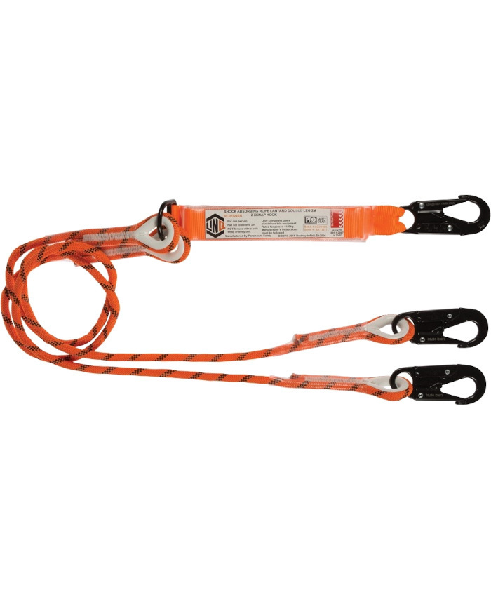 WORKWEAR, SAFETY & CORPORATE CLOTHING SPECIALISTS - LINQ Double Leg Kernmantle 2M Shock Absorb Rope Lanyard with Hardware SN X3