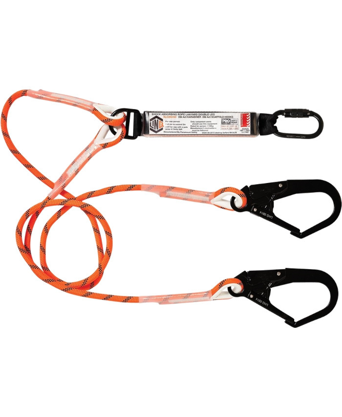 WORKWEAR, SAFETY & CORPORATE CLOTHING SPECIALISTS - LINQ Double Leg Kernmantle 2M Shock Absorb Rope Lanyard with Hardware KD & SD X2