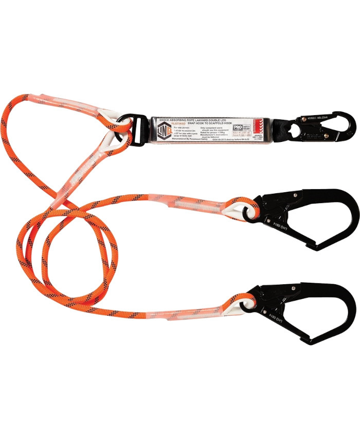 WORKWEAR, SAFETY & CORPORATE CLOTHING SPECIALISTS - LINQ Double Leg Kernmantle 2M Shock Absorb Rope Lanyard with Hardware SN & SD X2