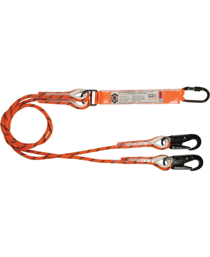 WORKWEAR, SAFETY & CORPORATE CLOTHING SPECIALISTS - LINQ Double Leg Kernmantle 2M Shock Absorb Rope Lanyard with Hardware KS & SN X2