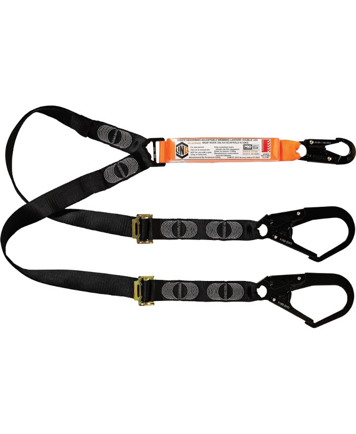 WORKWEAR, SAFETY & CORPORATE CLOTHING SPECIALISTS - LINQ Elite Double Leg Shock Absorbing 2M Adjustable Lanyard with Hardware SN & SD X2