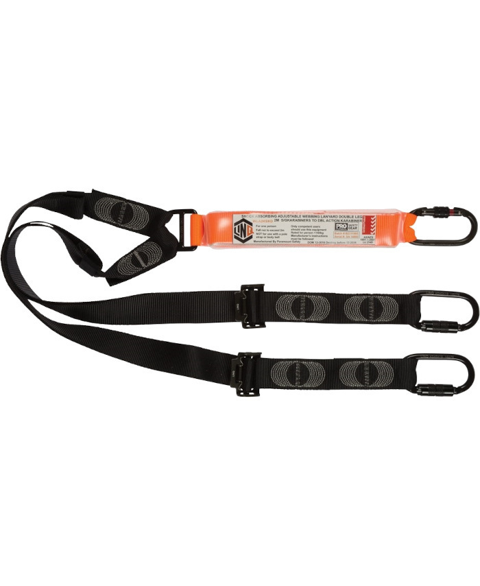 WORKWEAR, SAFETY & CORPORATE CLOTHING SPECIALISTS - LINQ Elite Double Leg Shock Absorbing 2M Adjustable Lanyard  with Hardware KS & KD X2