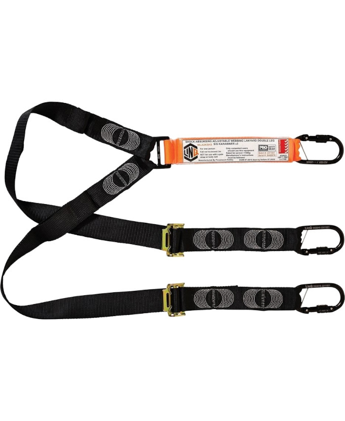 LINQ Elite Double Leg Shock Absorbing 2M Adjustable Lanyard with Hardware KS X2