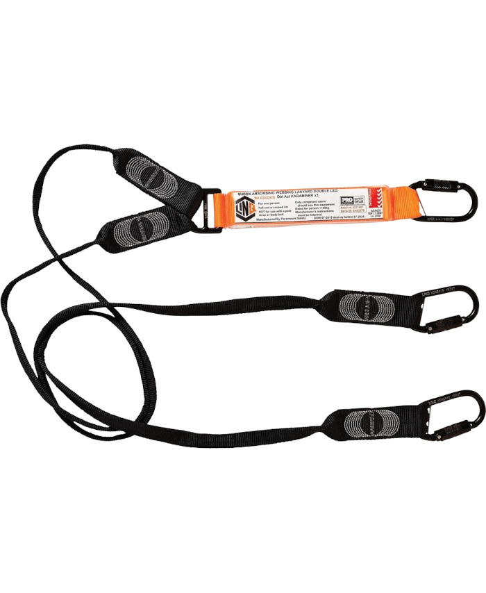 LINQ Elite Double Leg Shock Absorbing Webbing Lanyard with Hardware KD X3