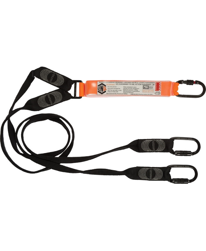 WORKWEAR, SAFETY & CORPORATE CLOTHING SPECIALISTS - LINQ Elite Double Leg Shock Absorbing Webbing Lanyard with Hardware KS & KD X2