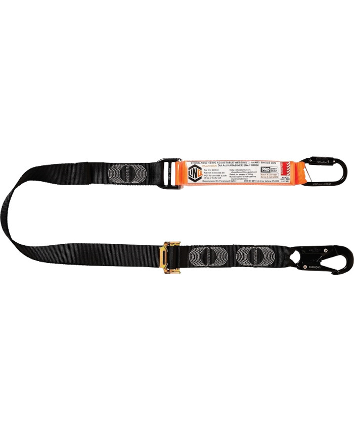 WORKWEAR, SAFETY & CORPORATE CLOTHING SPECIALISTS - LINQ Elite Single Leg Shock Absorbing 2M Adjustable Lanyard with Hardware KD & SN