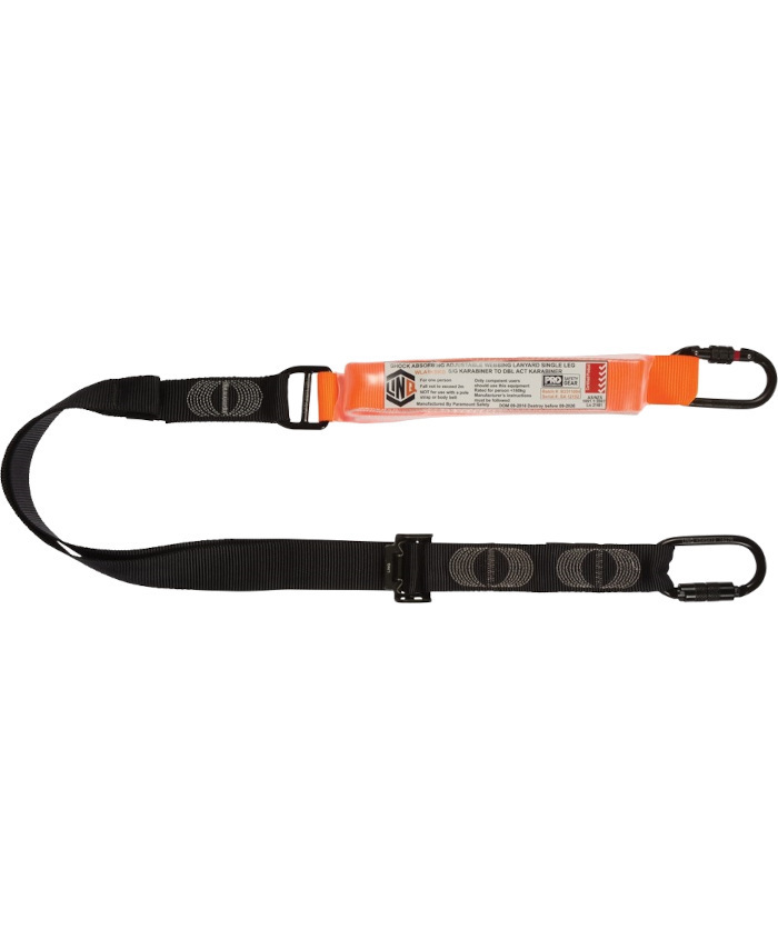 WORKWEAR, SAFETY & CORPORATE CLOTHING SPECIALISTS - LINQ Elite Single Leg Shock Absorbing 2M Adjustable Lanyard with Hardware KS & KD