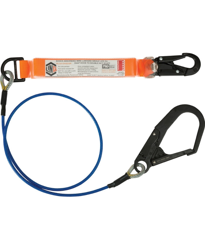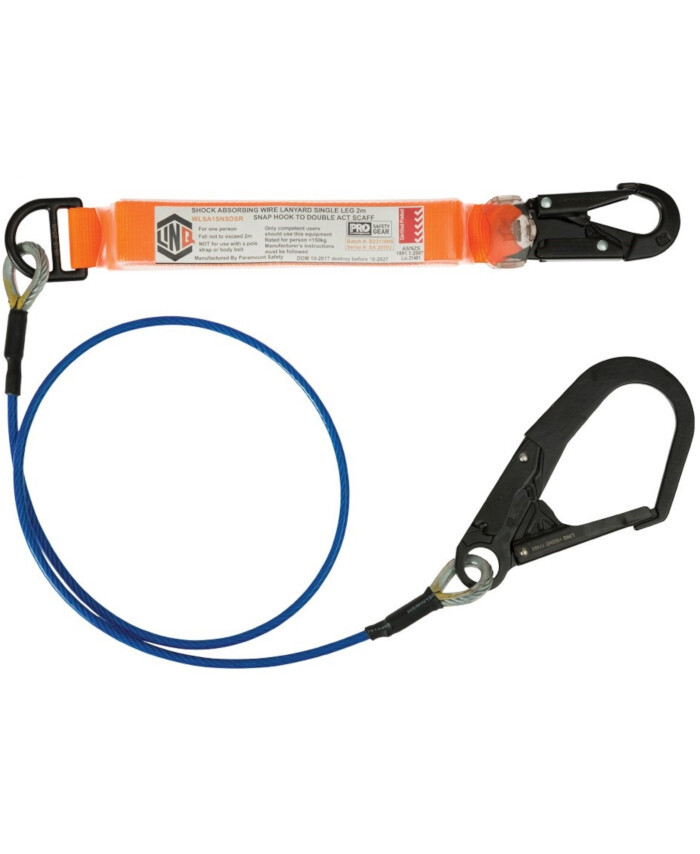 3. LINQ Elite Single Leg Shock Absorbing 2M Wire Rope Lanyard with Hardware SN & SD