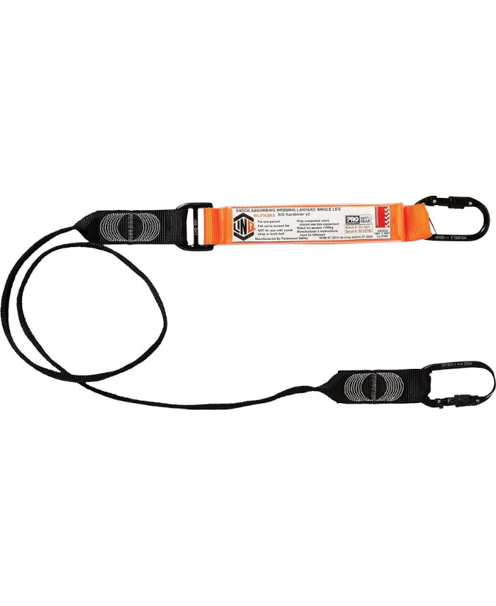 WORKWEAR, SAFETY & CORPORATE CLOTHING SPECIALISTS - LINQ Elite Single Leg Shock Absorbing Webbing Lanyard with Hardware KS & KD