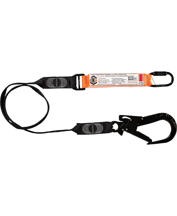 WORKWEAR, SAFETY & CORPORATE CLOTHING SPECIALISTS - LINQ Elite Single Leg Shock Absorbing Webbing Lanyard with Hardware KD & ST