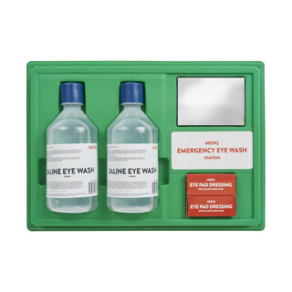 MEDIQ EYEWASH STATION OPEN WITH MIRROR GREEN