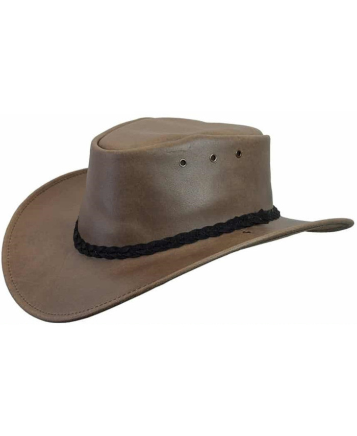 The Murray Hats signature brim profile is curved like the bends of its iconic river namesake, creating a classic Australian look Assembled from Italian leather cow hide with a waxed finish and fitted with a plaited synthetic felt band Soft, high quality leather shapes to the wearer s head over time ensuring a custom comfortable fit Australian made by Newcastle Hats in Western Australia Featuring a wide brim with a rolled edge supported by brimlock for a squashable yet durable style UPF 50+ Excellent Protection Complies with AS 4399:2020 Sun Protective Clothing Evaluation and Classification For more information on the Sun Protective Clothing Standard and UPF ratings