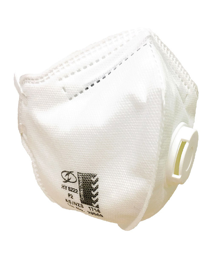 Disposable respirator certified to AS /NZS 1716. High Particle filtration with low breathing resistance. Exhalation Valve to reduce temperature and humidity build up inside mask. Made from PolyPropylene melt-blown filter material which is an inherently water repellent material. Protects against mechanically and thermally generated health hazardous dry and liquid airbourne particles. High quality filter material for capture of metal fume, wood dust, fibreglass, silica, asbestos and liquid mists. Respiratory protection when Sanding, Grinding, Welding, spraying water based liquids. Non allergenic elastic straps and nose bridge seal for perfect fit. Individually sealed for hygiene and carrying convenience.
