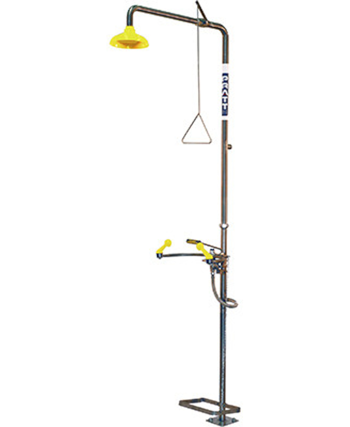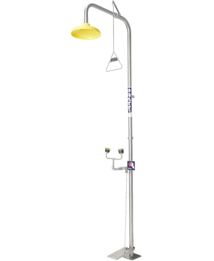 WORKWEAR, SAFETY & CORPORATE CLOTHING SPECIALISTS - PRATT COMBINATION SHOWER WITH SINGLE NOZZLE EYE WASH NO BOWL WITH FOOT TREADLE