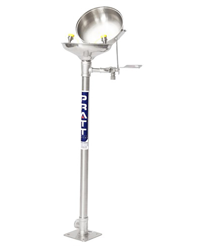 PRATT PEDESTAL MOUNTED EYEWASH WITH EYE WASH NOZZLE WITH BOWL NO TREADLE - FLIP TOP LID