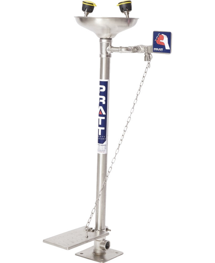 WORKWEAR, SAFETY & CORPORATE CLOTHING SPECIALISTS - PRATT PEDESTAL MOUNTED SINGLE NOZZLE EYE WASH WITH BOWL & FOOT TREADLE