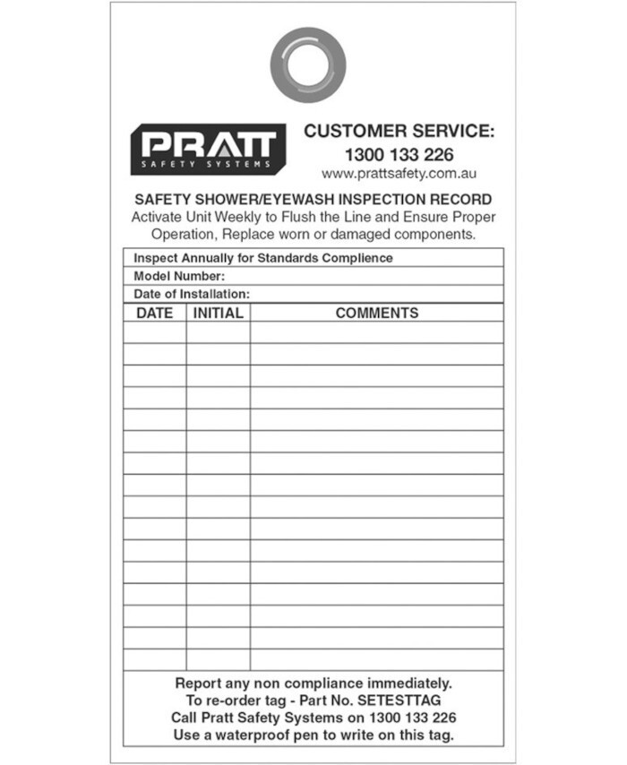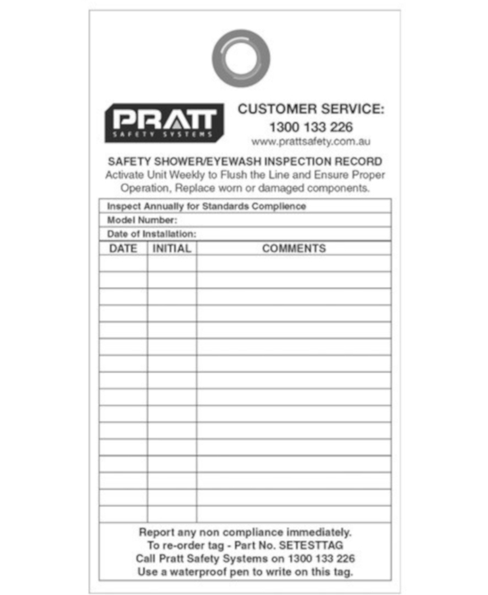 PRATT SHOWER AND EYE WASH TEST TAG - PACK OF 10