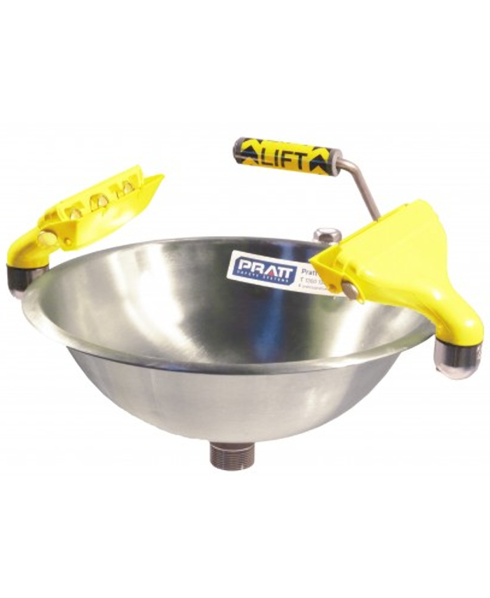 PRATT WALL MOUNTED TRIPLE NOZZLE EYE & FACE WASH WITH BOWL NO FOOT TREADLE