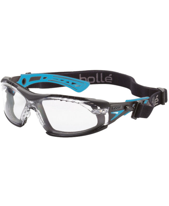 WORKWEAR, SAFETY & CORPORATE CLOTHING SPECIALISTS - RUSH+ SMALL SEAL Black / Blue Temples PLATINUM AS/AF Clear Lens - Assembled with Gasket & Strap - Spectacles