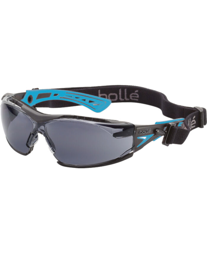 WORKWEAR, SAFETY & CORPORATE CLOTHING SPECIALISTS - RUSH+ SMALL SEAL Black / Blue Temples PLATINUM AS/AF Smoke Lens - Assembled with Gasket & Strap - Spectacles