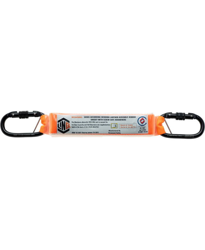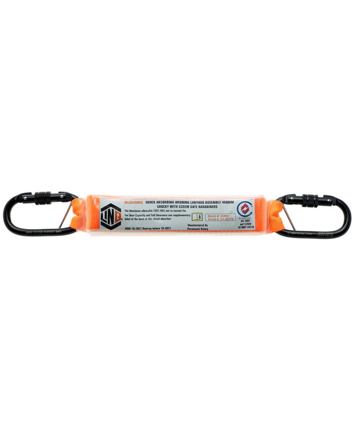 WORKWEAR, SAFETY & CORPORATE CLOTHING SPECIALISTS - SHOCK ABSORBING 450MM ASSEMBLY WITH PERM ATTACHED SCREW GATE KARABINERS