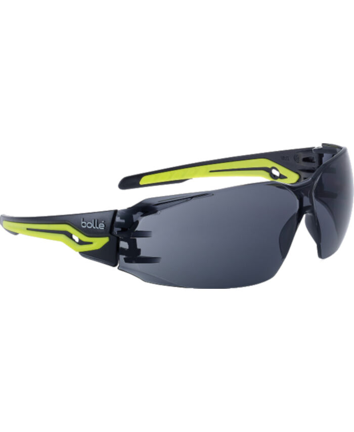 WORKWEAR, SAFETY & CORPORATE CLOTHING SPECIALISTS - SILEX+ Black / Yellow Temples Platinum AS/AF Smoke Lens